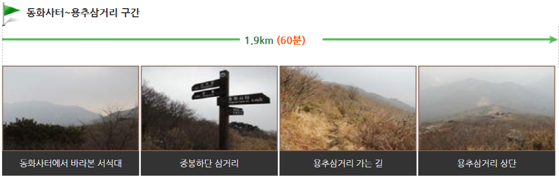 봄에는 철쭉으로, 가을은 억새군락으로 계절마다 다른 매력을 볼 수 있는 백마능선과 규봉을 조망할 수 있는 코스