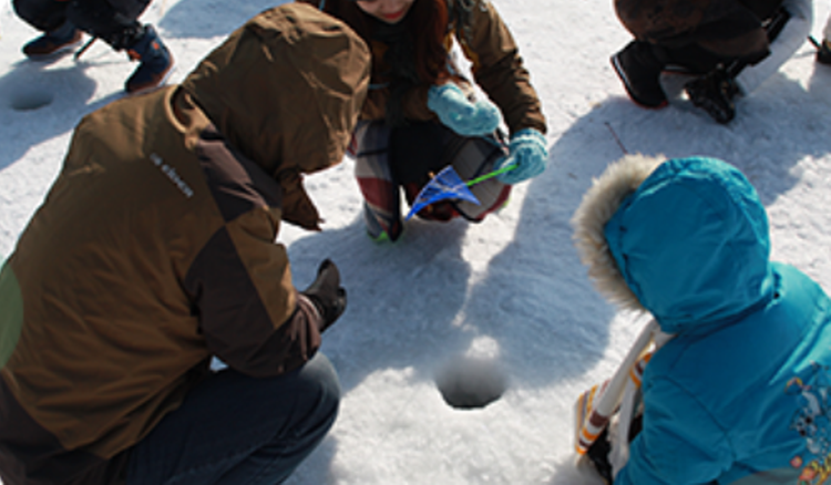 얼음을 깨고 송어를 낚는 재미를 느낄 수 있습니다.