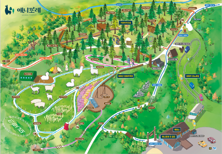 평창 애니포레는 동물을 뜻하는 Animal과 숲을 뜻하는 Forest의 합성어로 동물과 숲이 함께 하는 공간을 의미하며 용평 리조트 내에 위치해 있습니다. 알파카목장에서는 알파카를 비롯한 다양한 동물들에게 먹이 주기 체험을 할 수 있으며 가문비나무 숲길을 걸으며 이국적인 풍경을 감상할 수 도 있는 곳입니다.