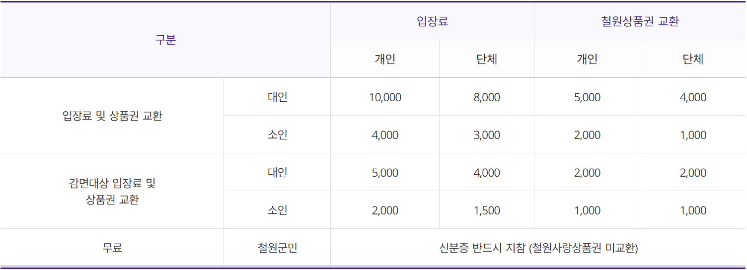 - 먹거리, 농특산물, 공예품 판매 부스 운영 : 철원사랑상품권 사용 가능