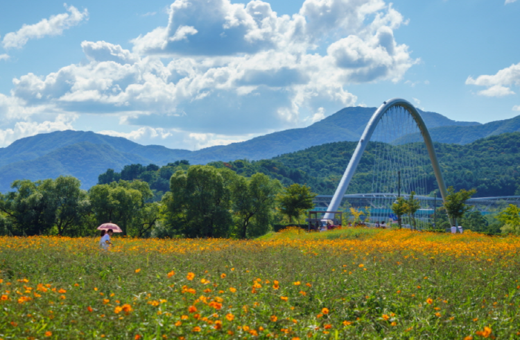 남양주 물의정원은 남양주시 조안면 북한강변에 자리 잡은 수변 공원으로 2012년 한강 살리기 사업으로 조성되었습니다. 물의정원 상징교인 뱃나들이교를 건너면 수려한 북한강과 맞닿아 있는 강변 산책로를 따라 대단지 초화단지가 조성되어 있습니다. 봄철에는 꽃 양귀비, 가을철에는 황화 코스모스가 절경을 이루는데요.