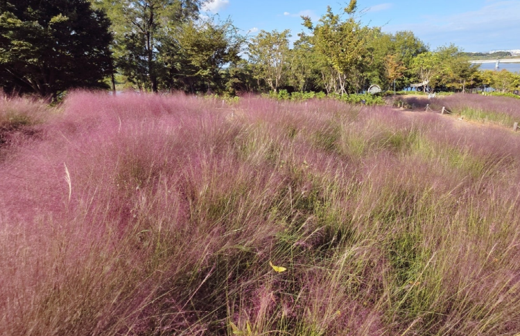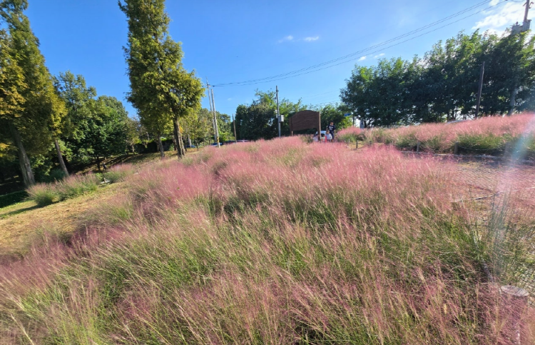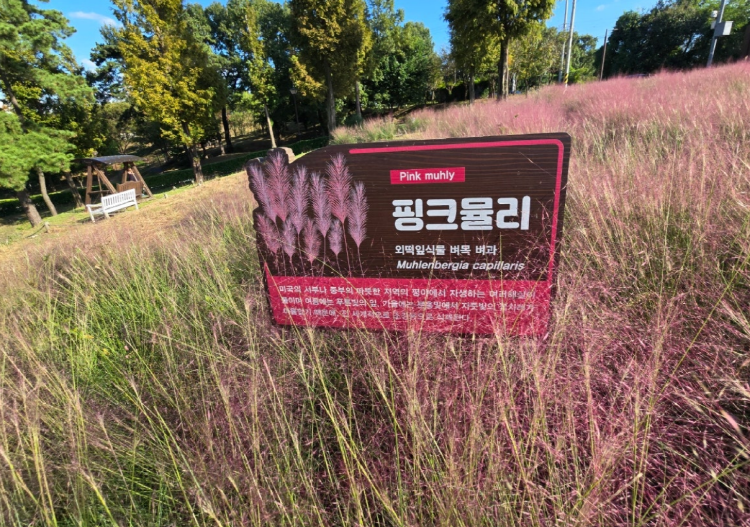 핑크뮬리는 9~11월까지 볼 수 있으며 억새와 비슷한 생김새로 핑크 억새라 불리고 있습니다. 가을에 내리문화공원에 오시면 사방에 핀 핑크뮬리를 감상할 수 있는데요.