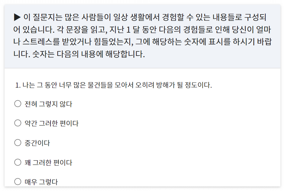 본인에게 위의 강박 장애 증상이 나타난다면 간편하게 온라인에서 할 수 있는 강박 장애 자가진단 테스트를 실시해 보고 증세가 의심된다면 정신건강의학과에 내원하시는 걸 권해드립니다.