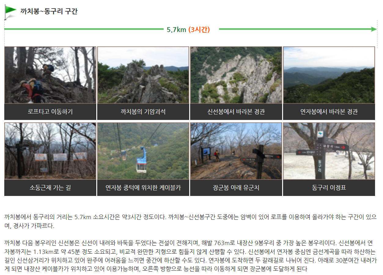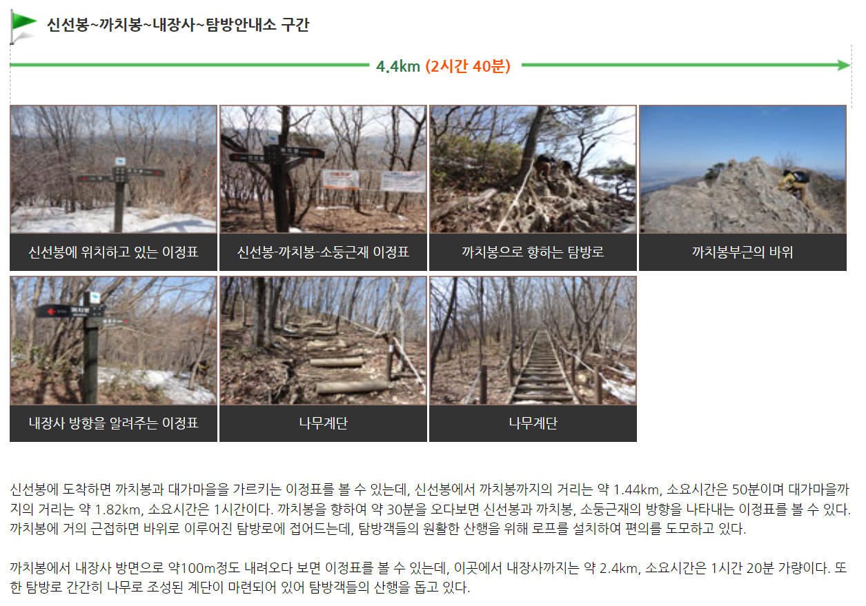 우리나라 국립공원 중에 최초로 조성된 자연관찰로이며 노약자와 어린이 탐방객에게 적합한 산행코스입니다.