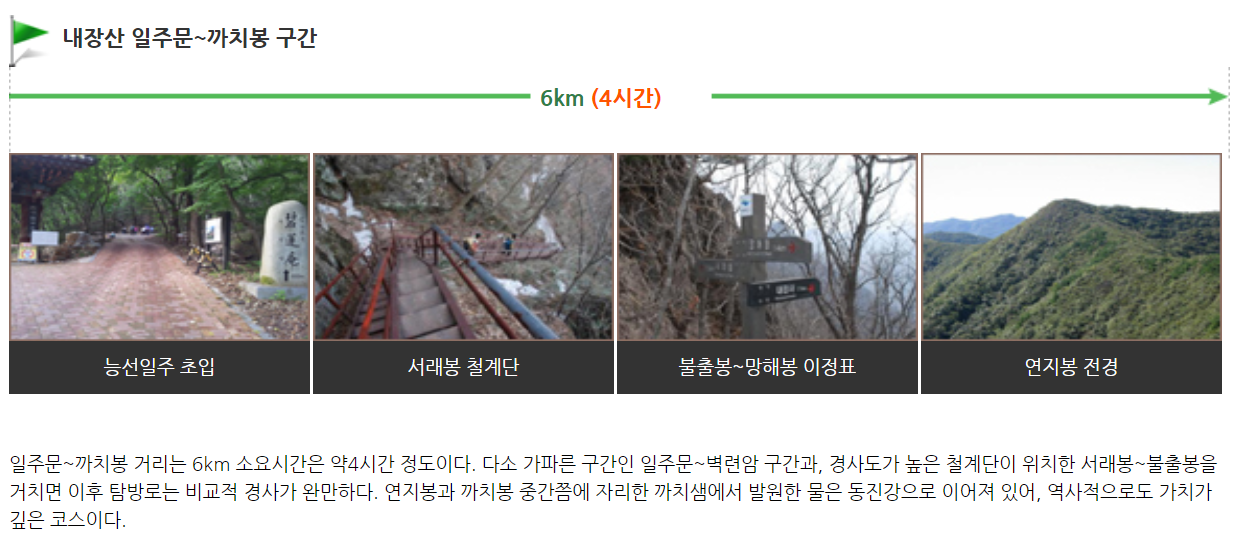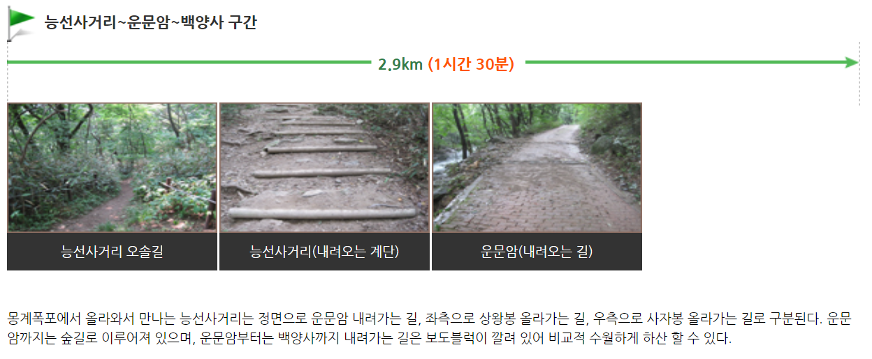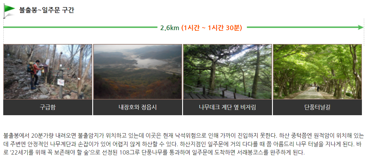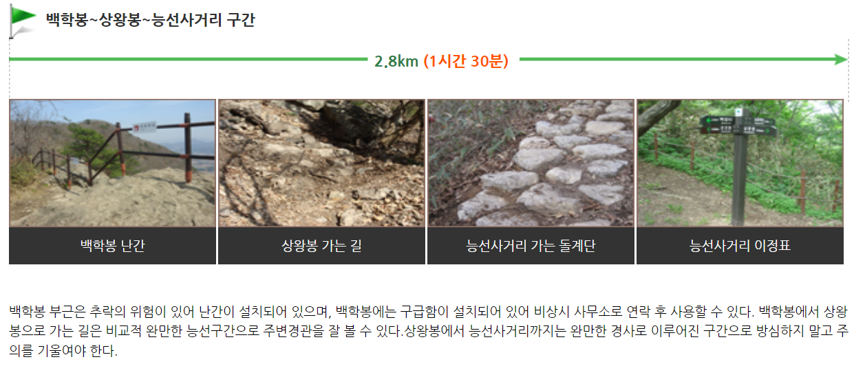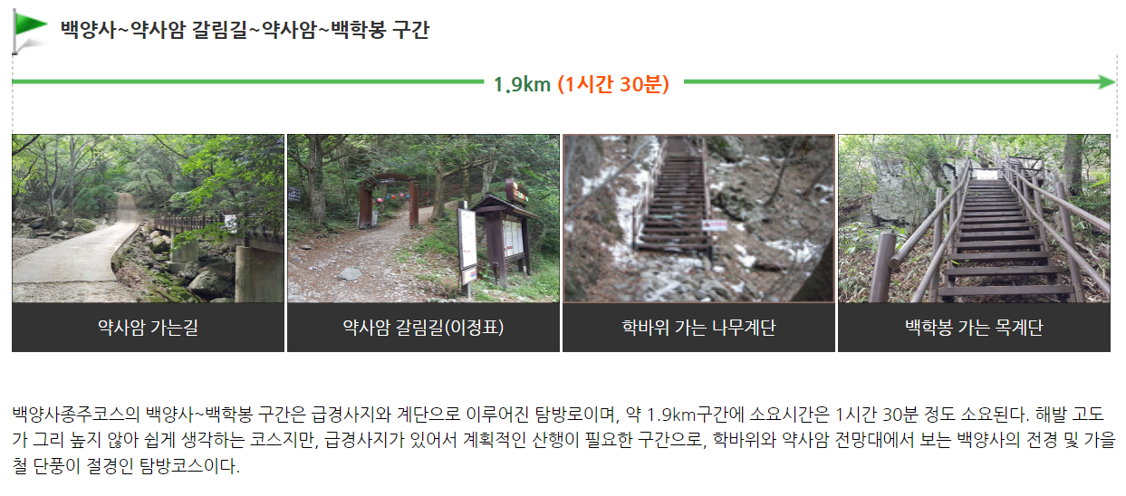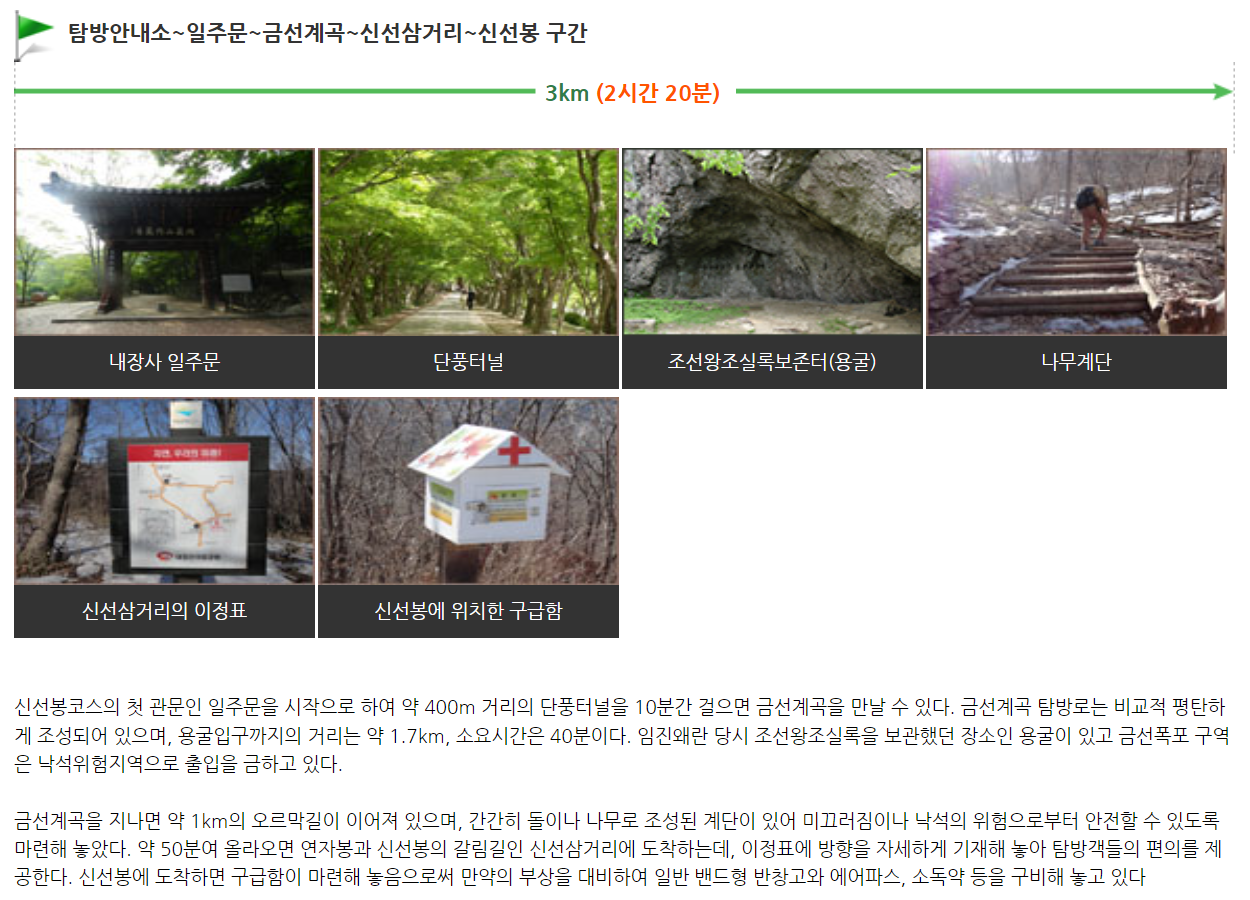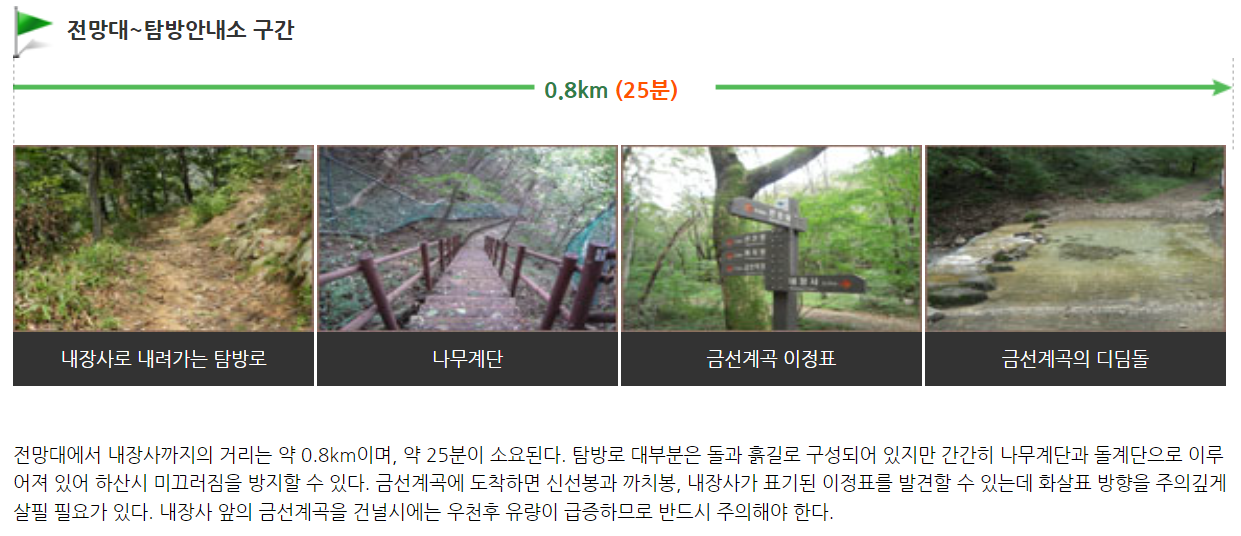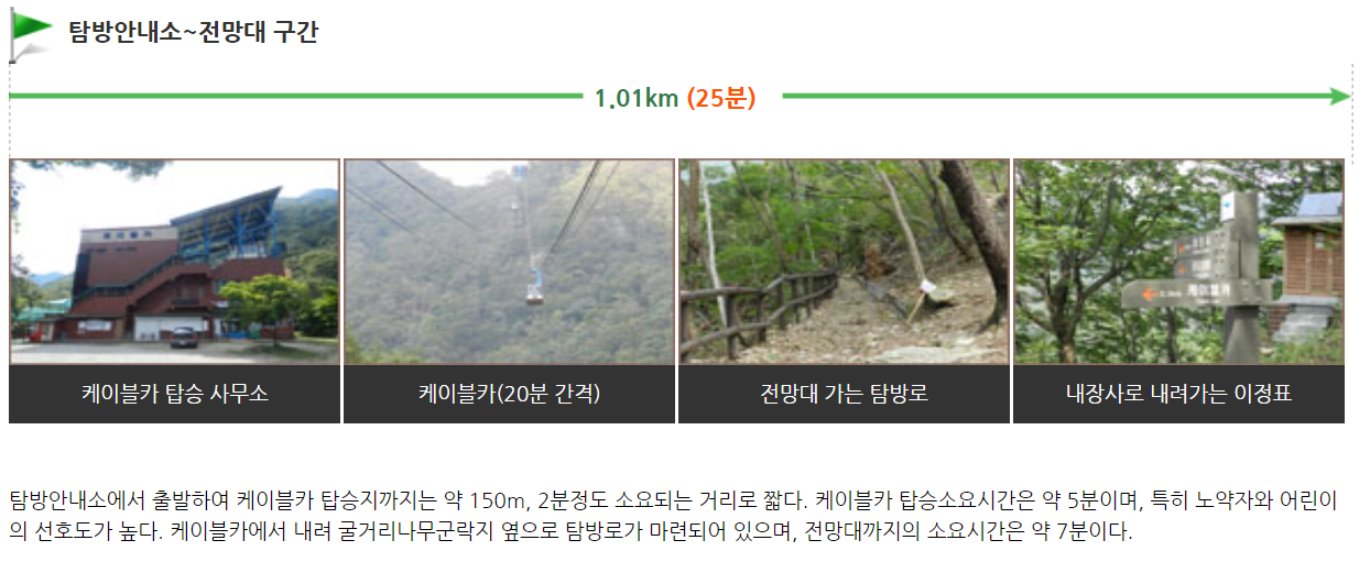 우리나라 국립공원 중에 최초로 조성된 자연관찰로이며 노약자와 어린이 탐방객에게 적합한 산행코스입니다.
